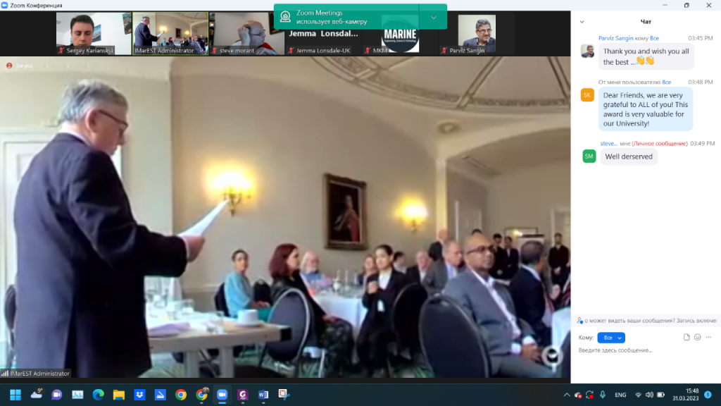 The Odessa Branch of the IMarEST was represented online by Sergey Karianskyi, PhD., Associate Professor, Honorary Secretary of Odessa Branch of IMarEST.
